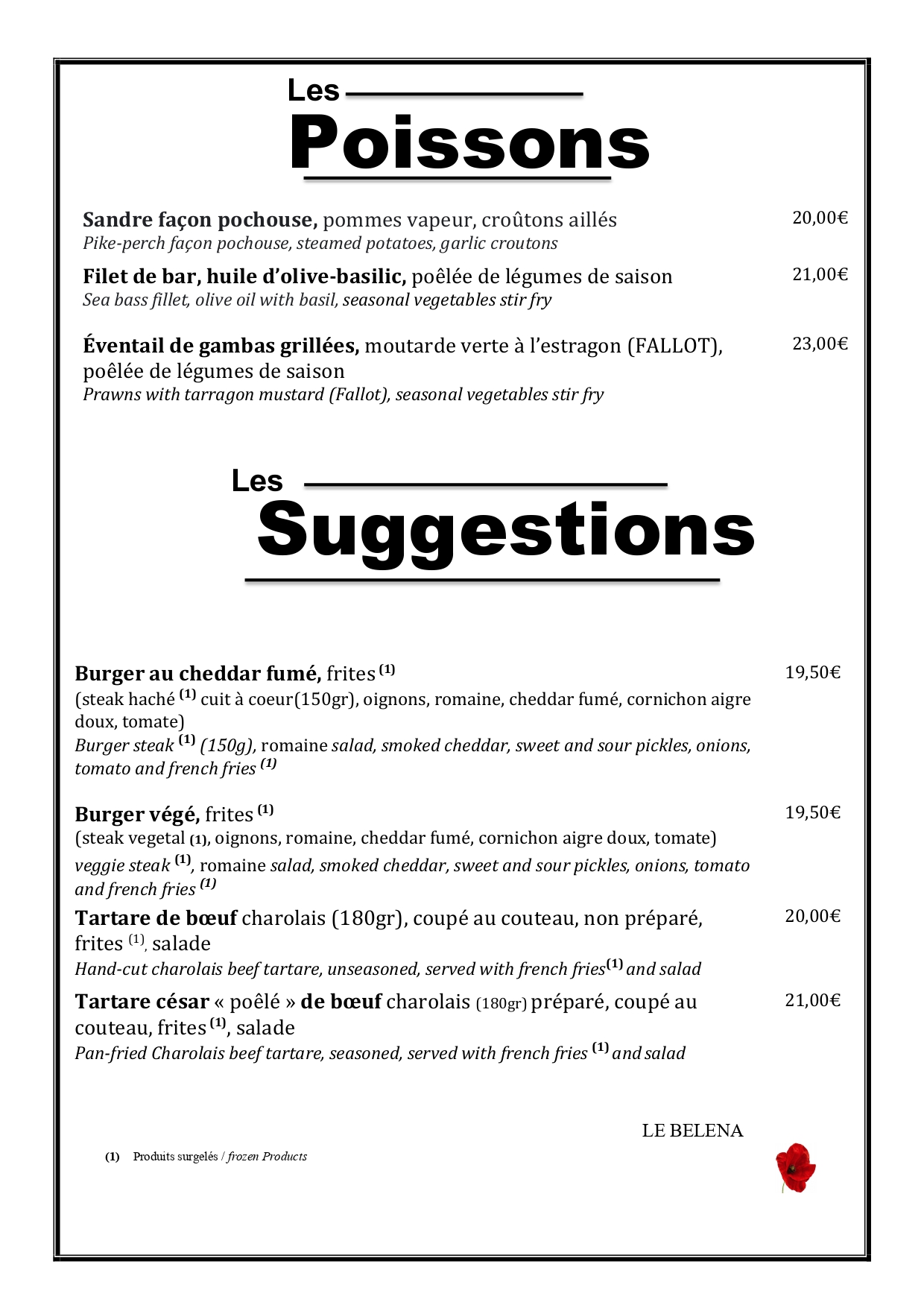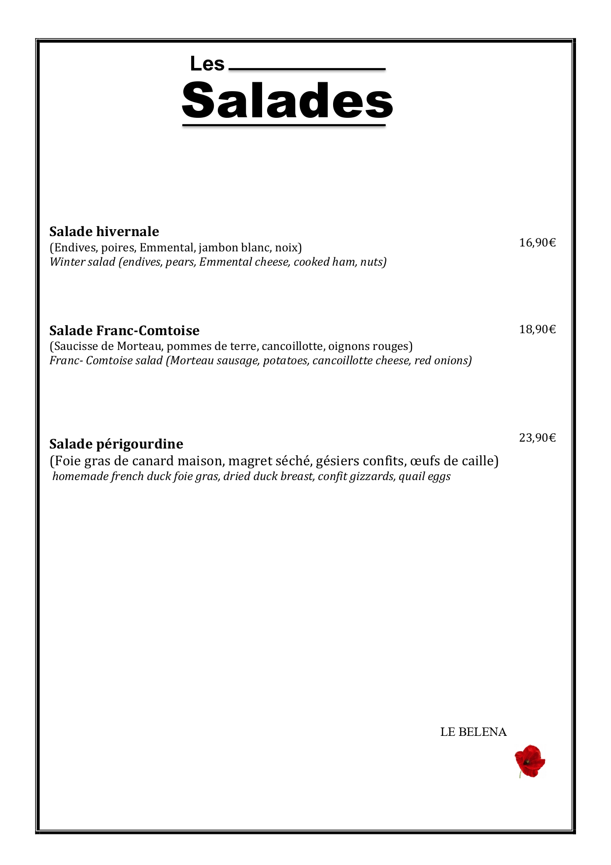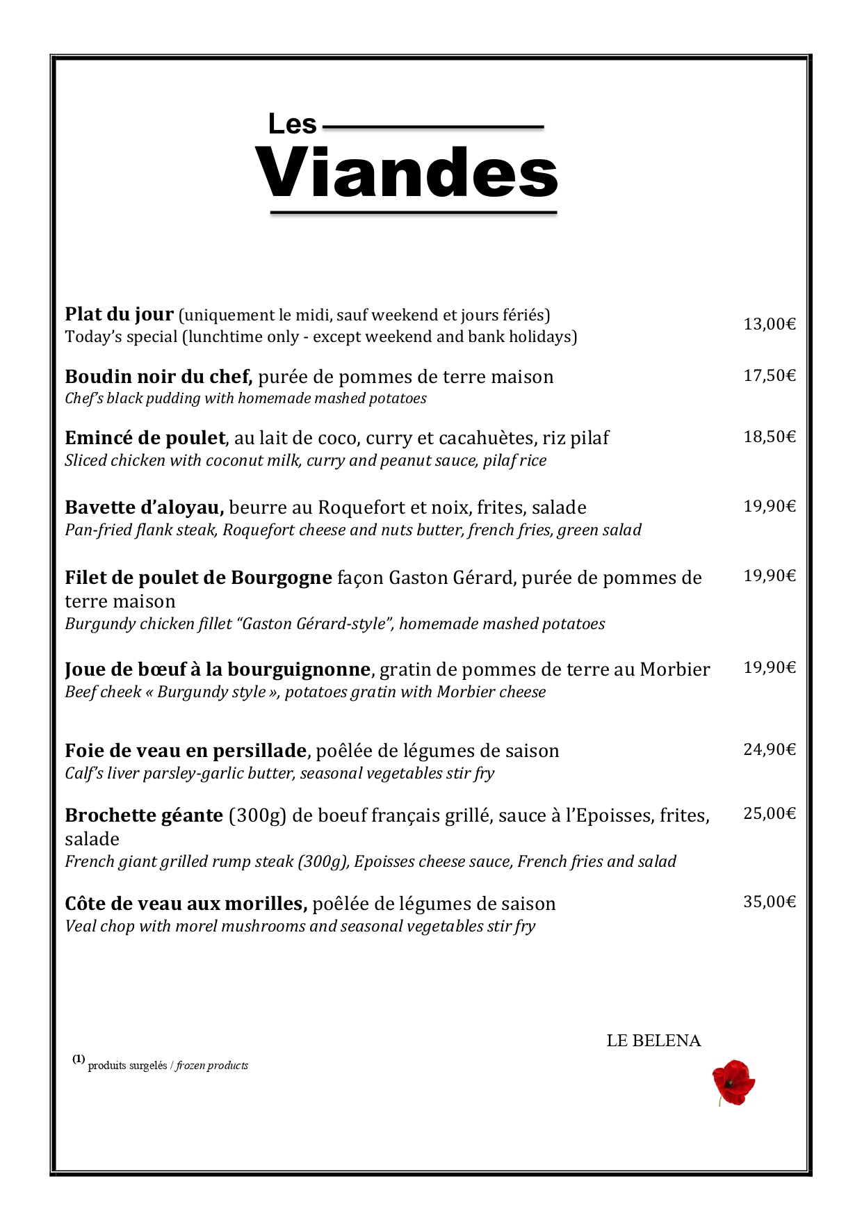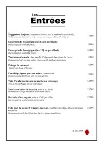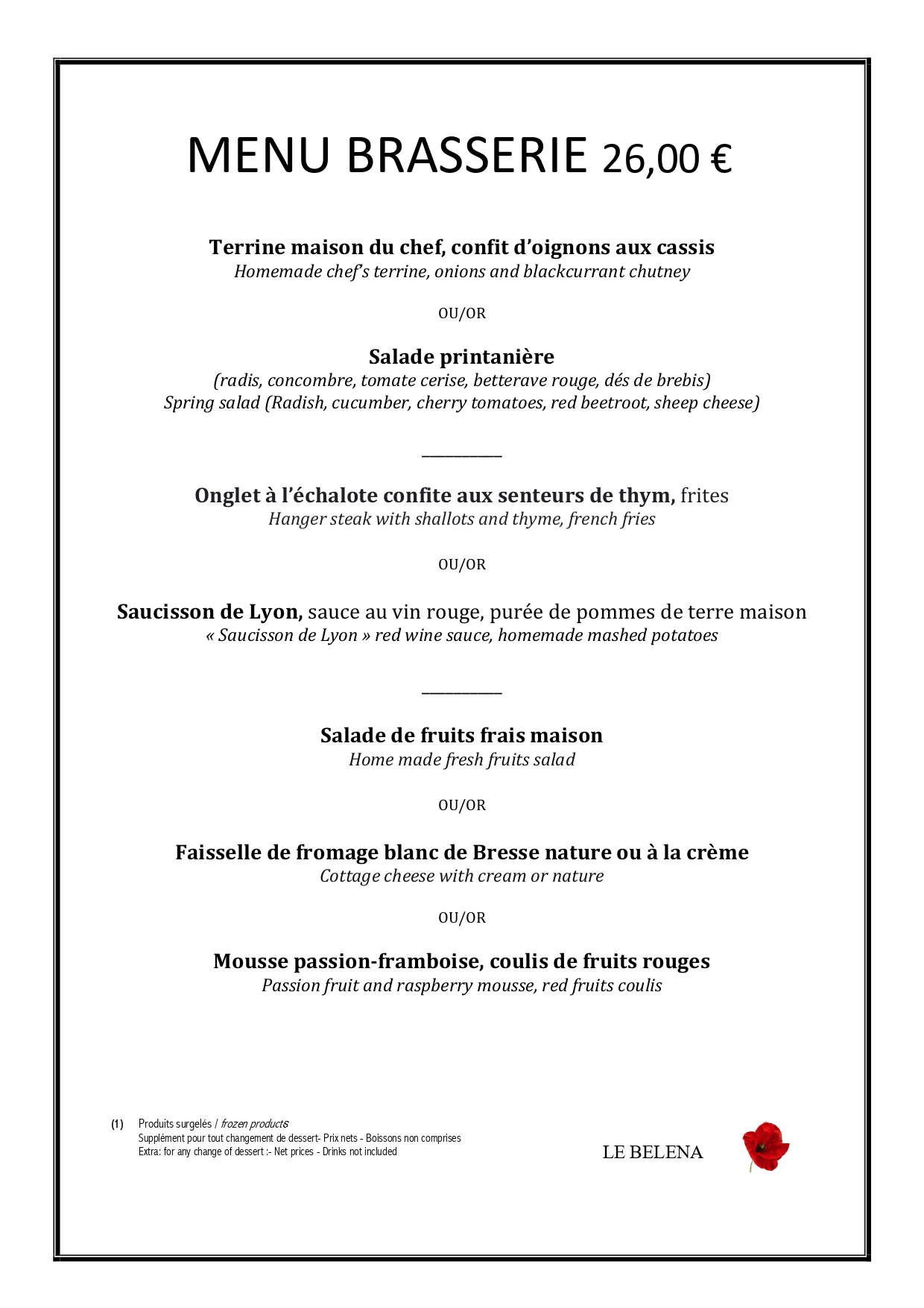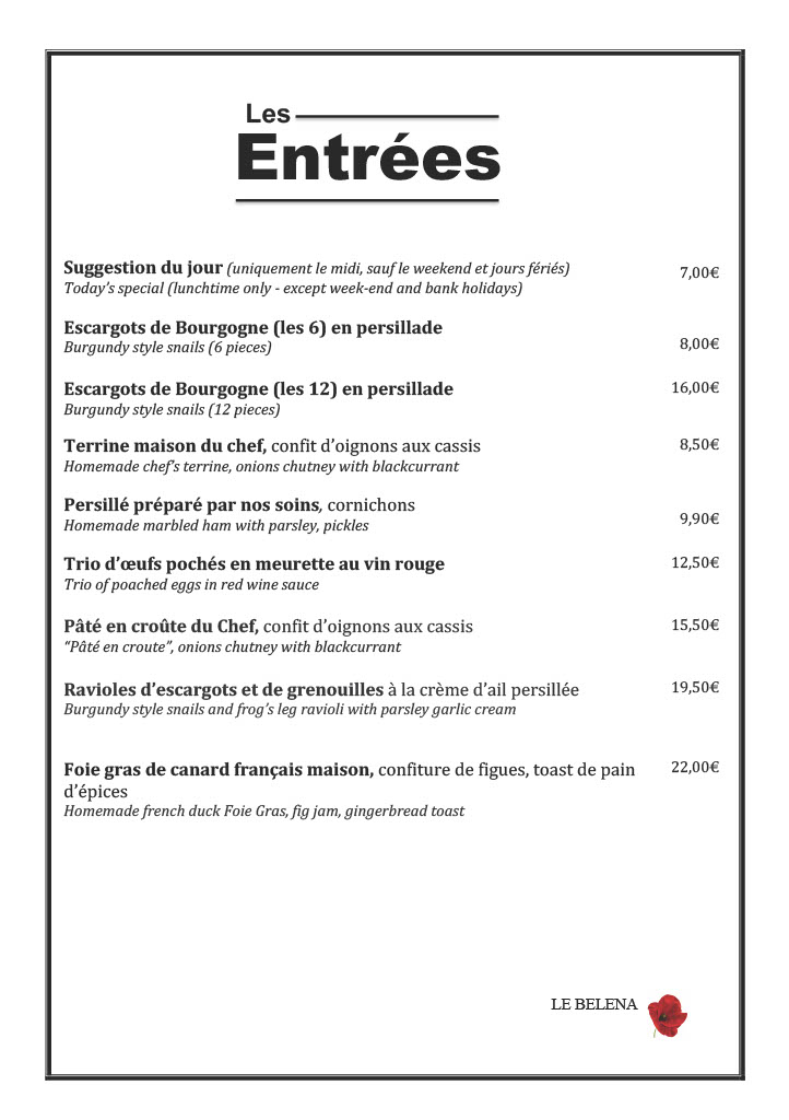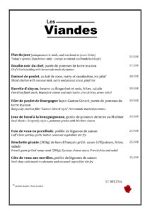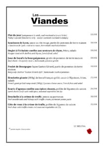 Menu brasserie