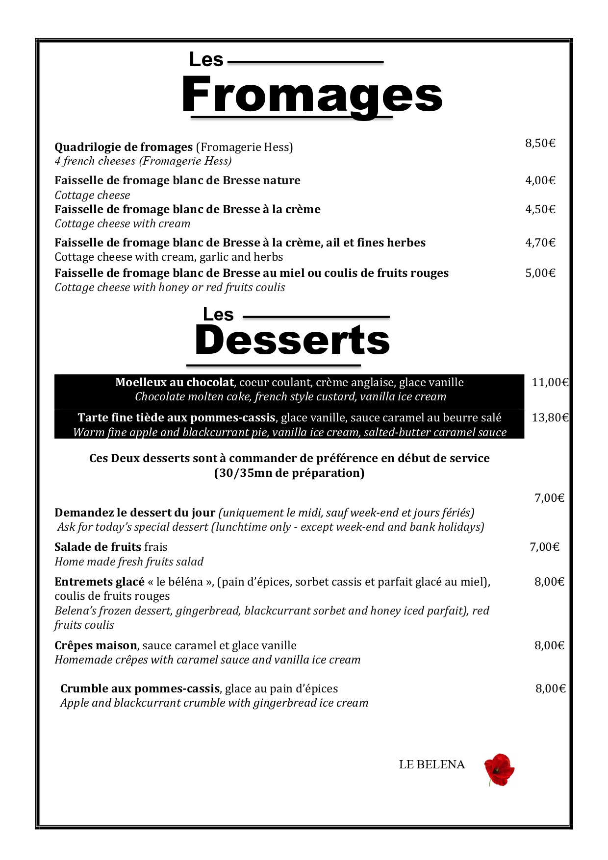 Nos fromages et desserts