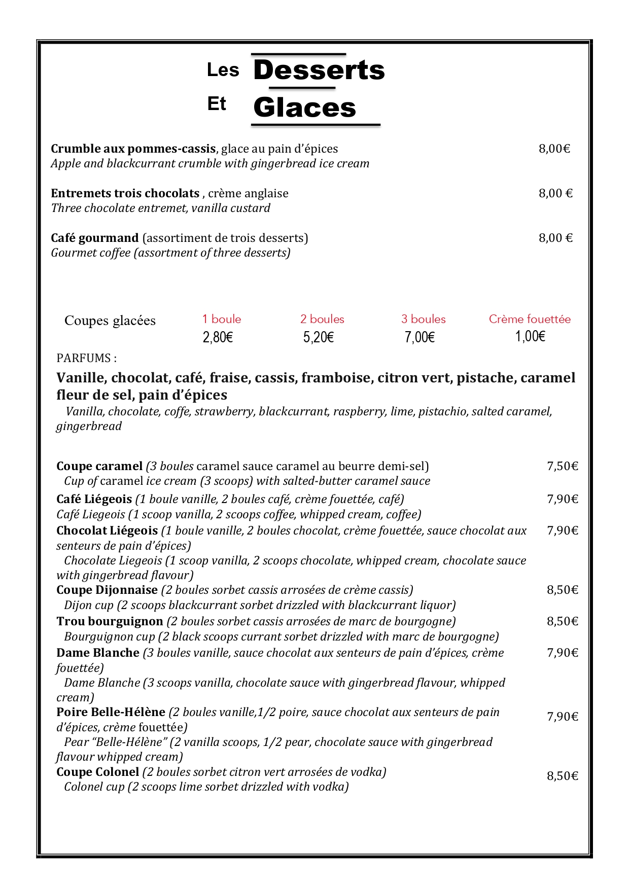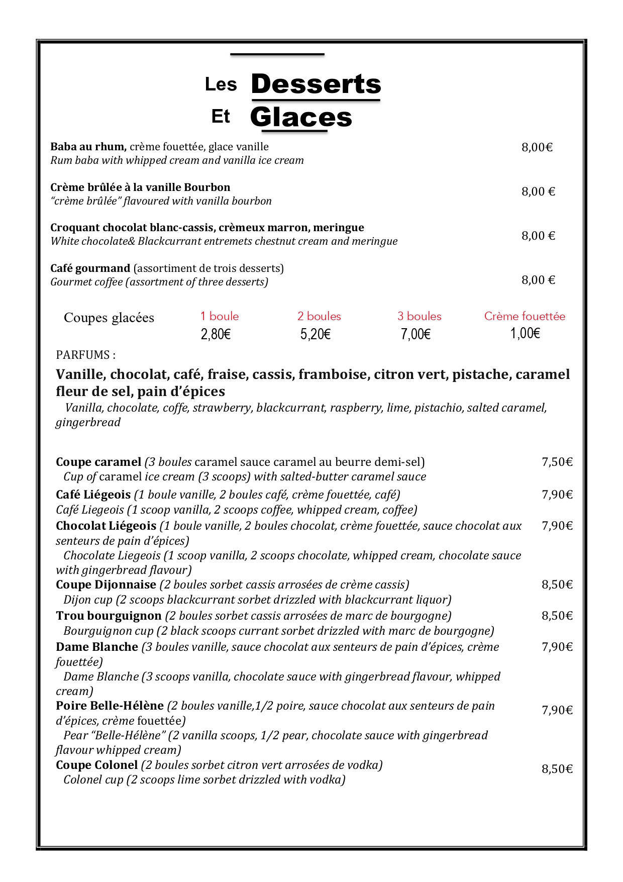 Nos Desserts et Glaces