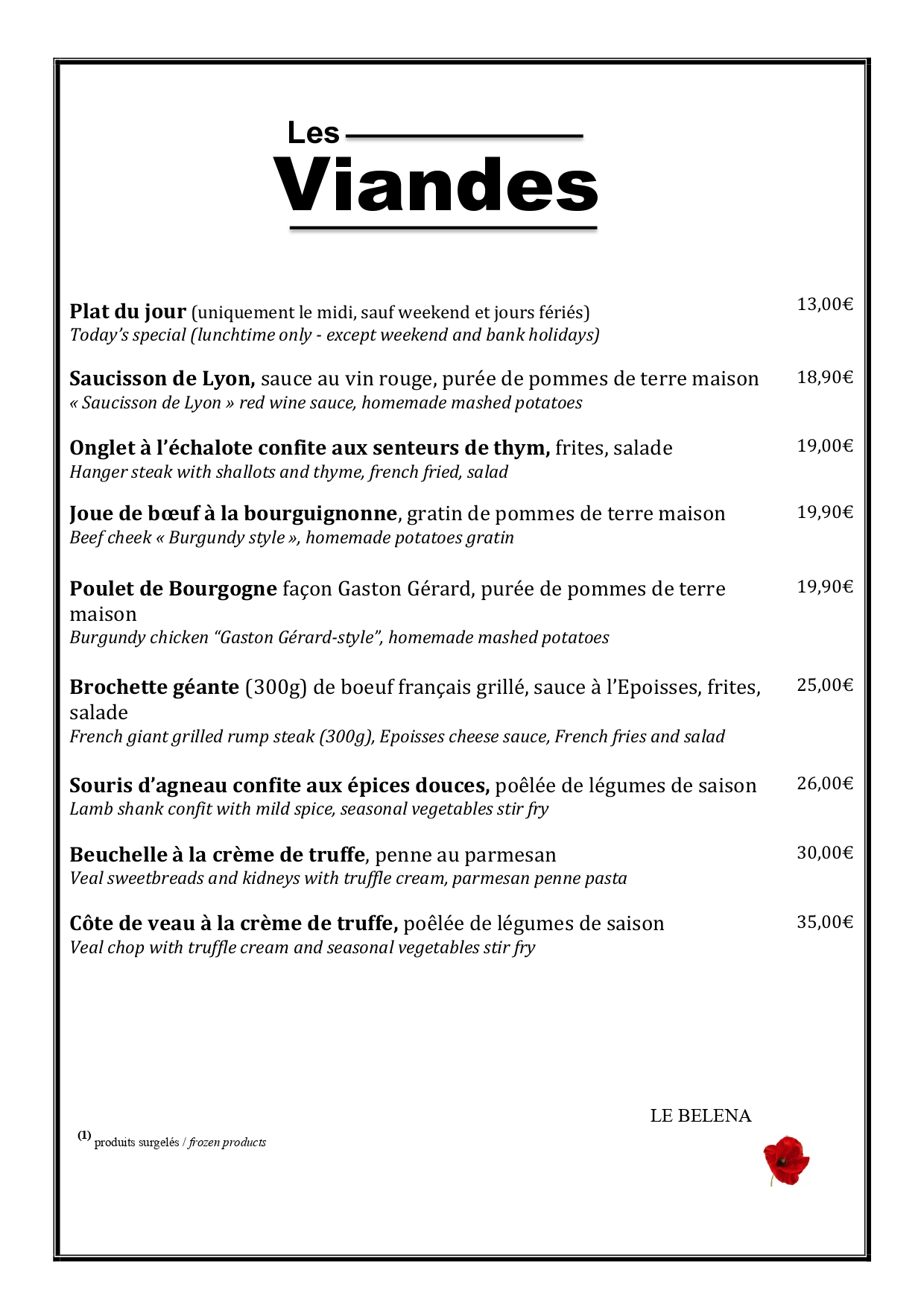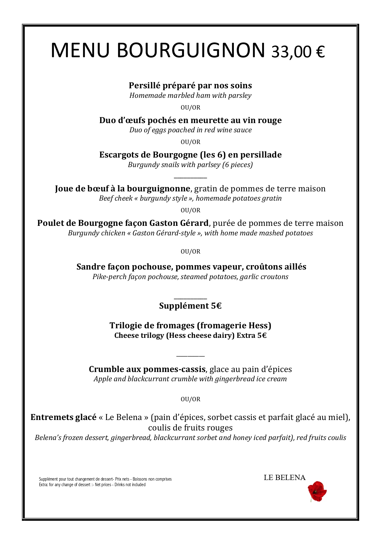 Menu Bourguignon