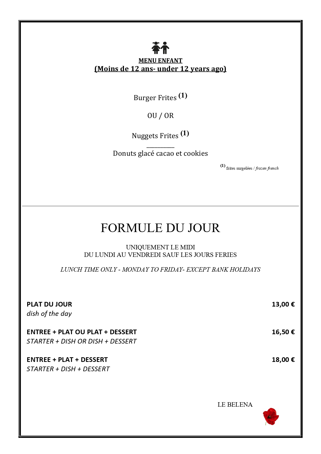 Menu enfant